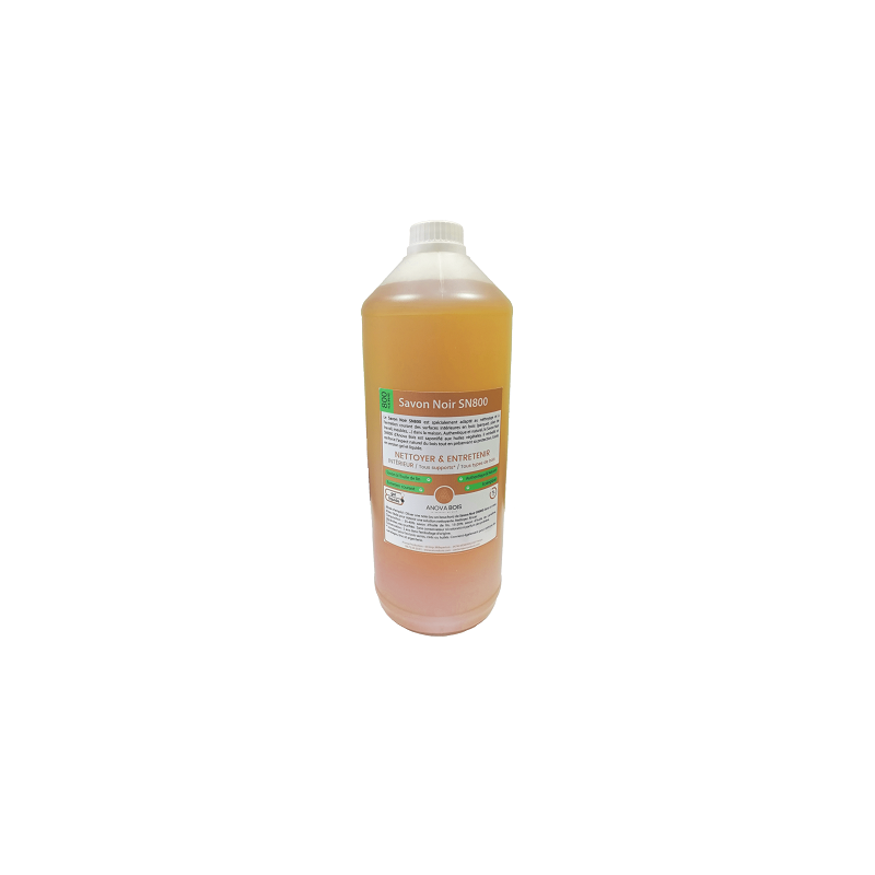 Spécialement adapté au nettoyage et à l'entretien courant des surfaces intérieures en bois (parquet, plan de travail, meubles, ...) dans la maison. Authentique et naturel, le Savon Noir SN800 d'Anova Bois est saponifié aux huiles végétales, il embellit et renforce l'aspect naturel du bois tout en préservant sa protection. Existe en version gel de 950 mL et liquide de 1000 mL.